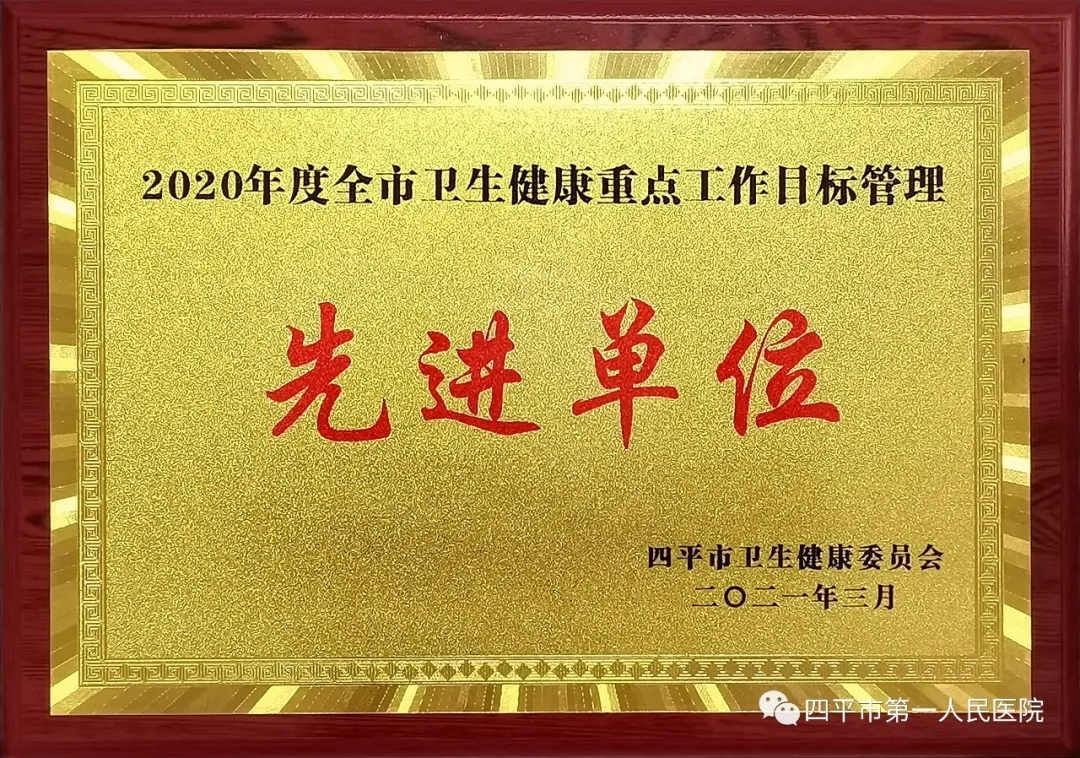3月30日,四平市卫健委召开了2021年全市卫生健康工作大会,会议宣读了《关于表彰2020年度全市卫生健康重点工作目标管理先进单位的决定》文件,其中,四平市第一人民医院被评为目标管理先进单位。